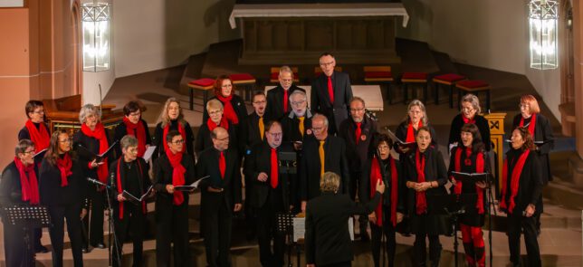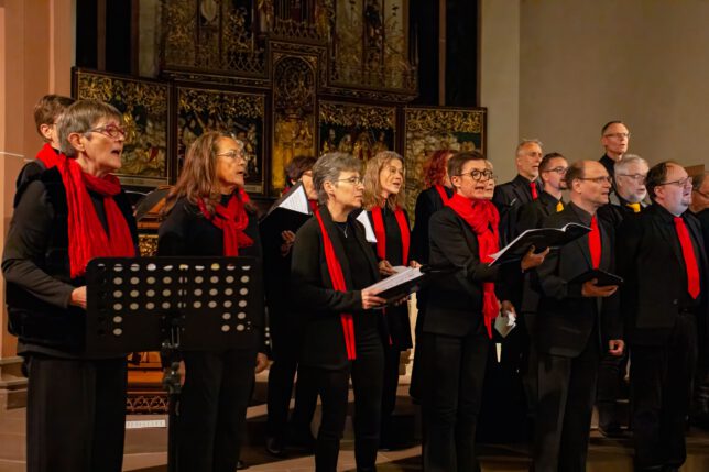 Beim Jubiläumskonzert lag spürbare Spannung in der Luft: Als wir mit den ersten Akkorden in die Jakobuskirche einzogen, füllte sich der Raum mit berührenden Klängen und spürbarer Energie. Auf den Stufen des Altarraums stehend, spürten wir die besondere Nähe zu unserem Publikum – ein Moment, der uns immer wieder daran erinnert, warum wir singen.