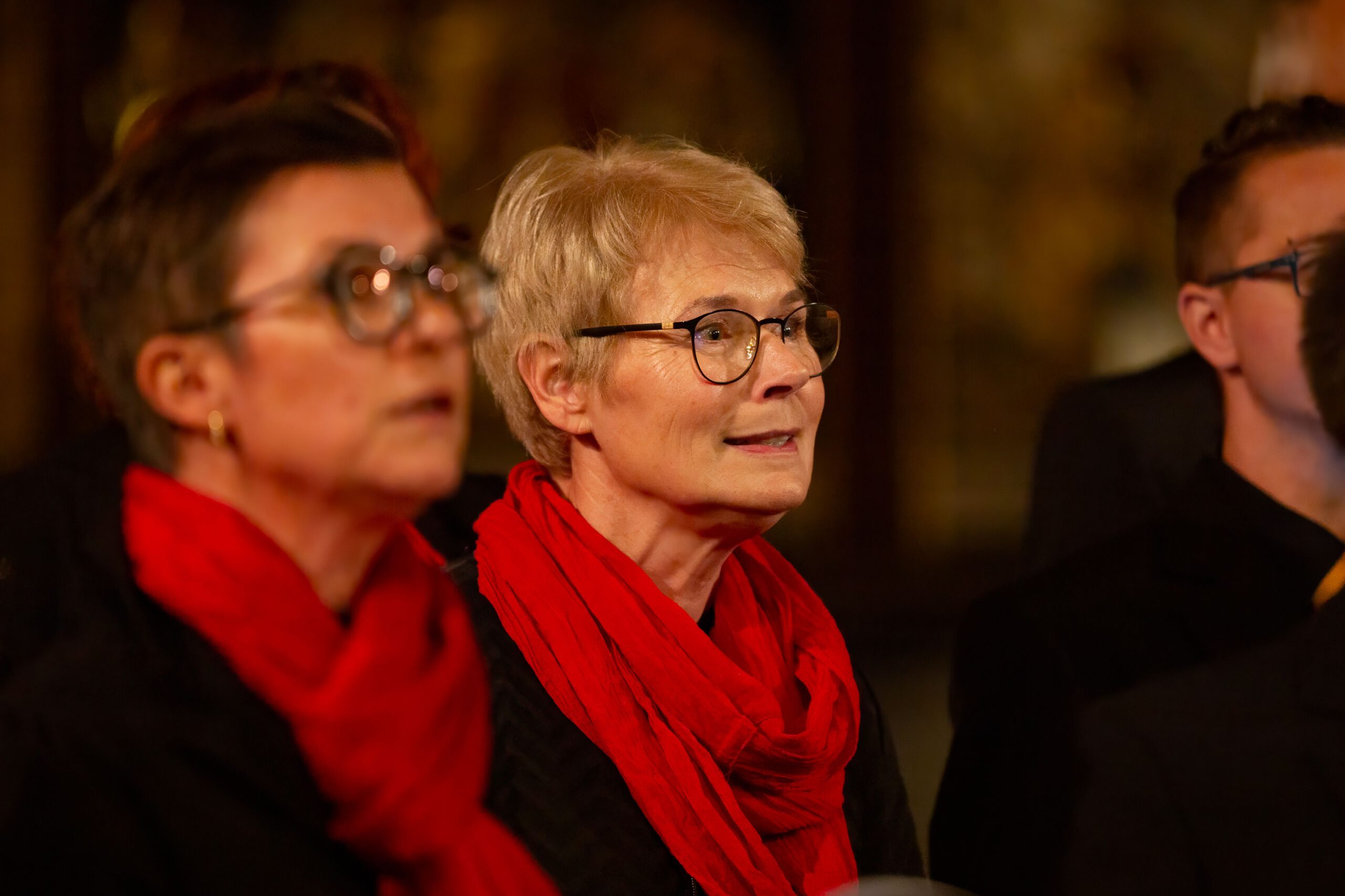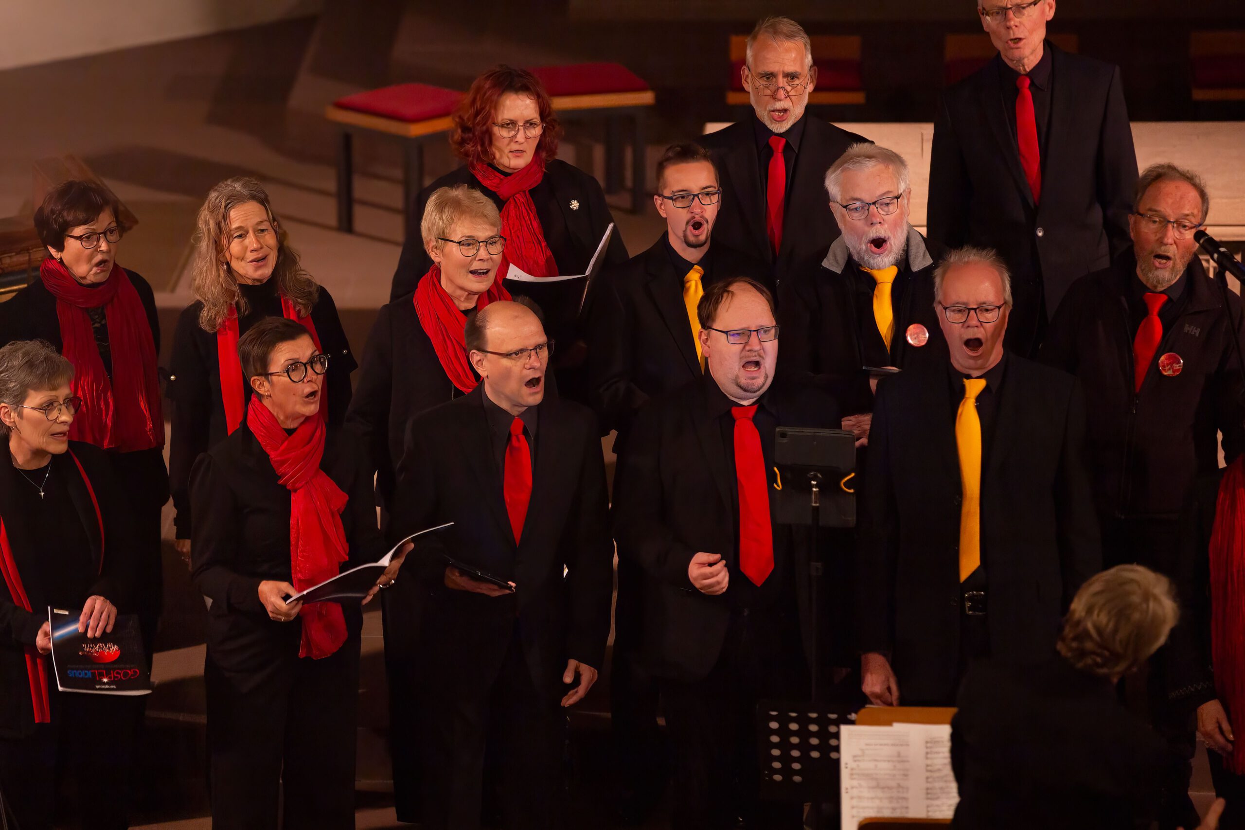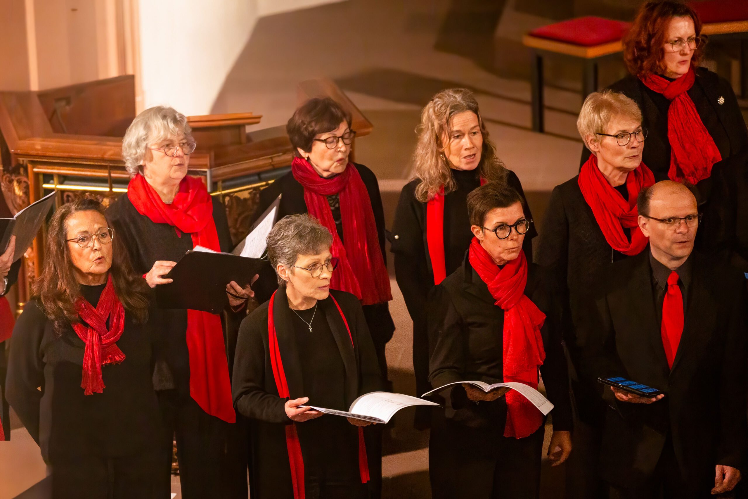 Beim Jubiläumskonzert lag spürbare Spannung in der Luft: Als wir mit den ersten Akkorden in die Jakobuskirche einzogen, füllte sich der Raum mit berührenden Klängen und spürbarer Energie. Auf den Stufen des Altarraums stehend, spürten wir die besondere Nähe zu unserem Publikum – ein Moment, der uns immer wieder daran erinnert, warum wir singen.