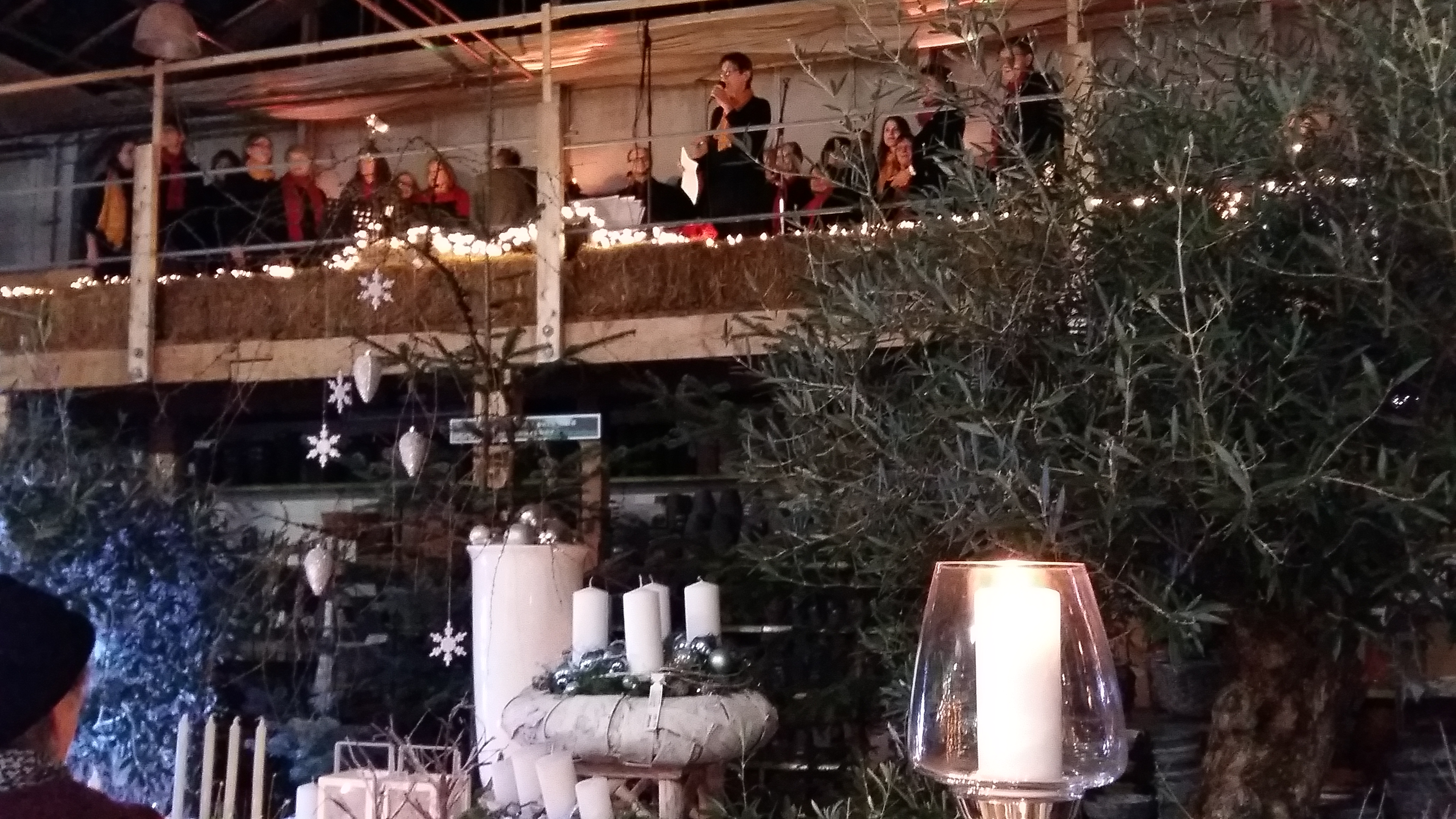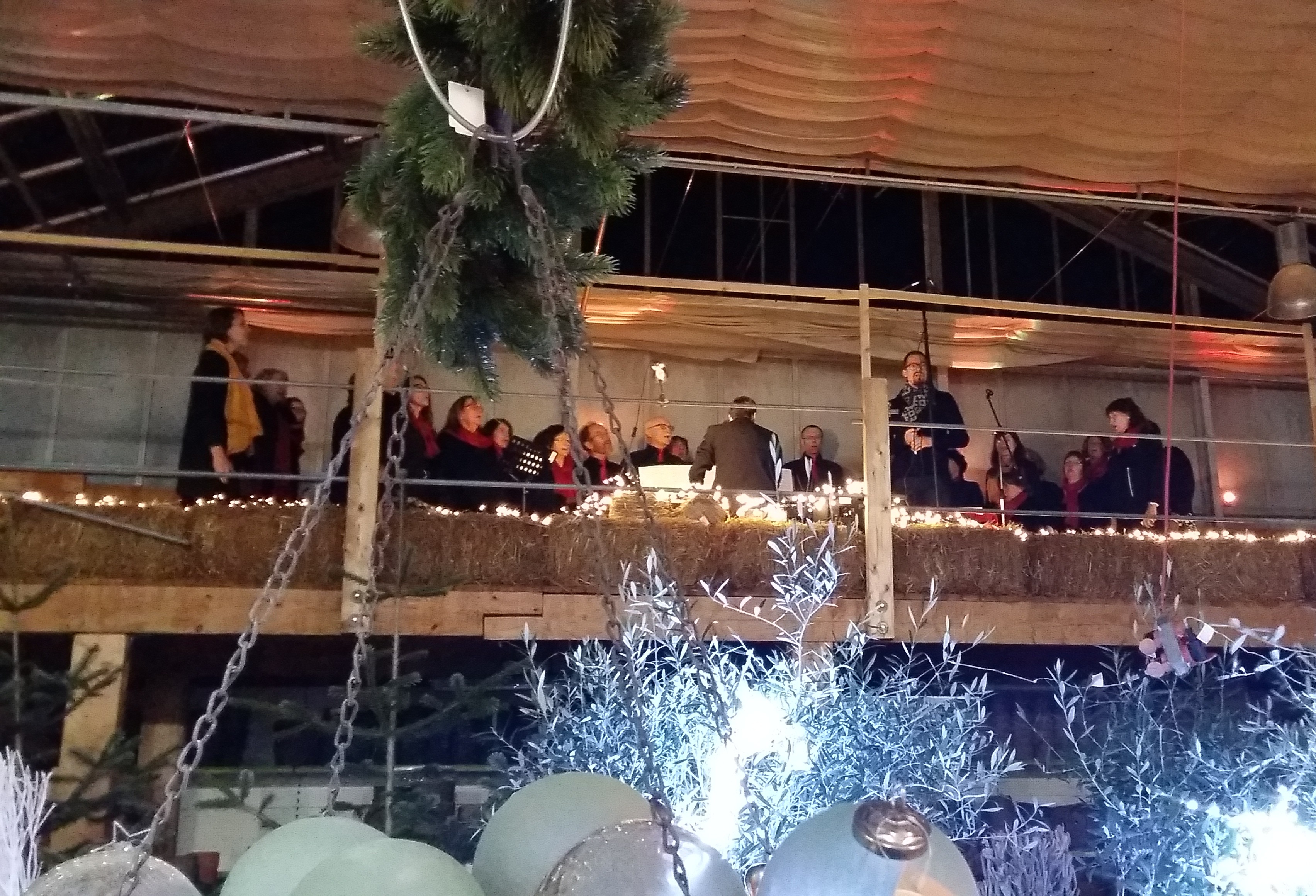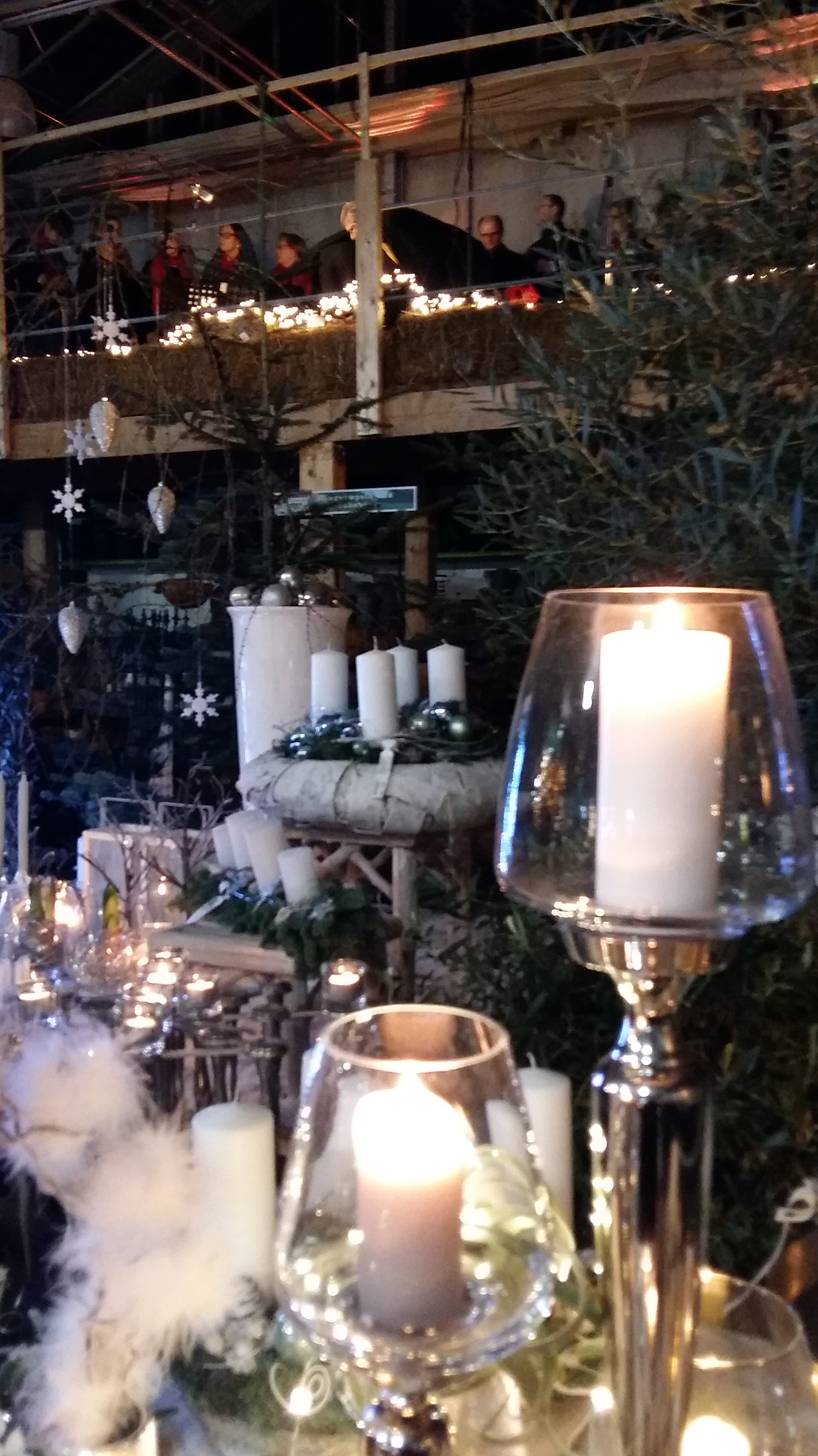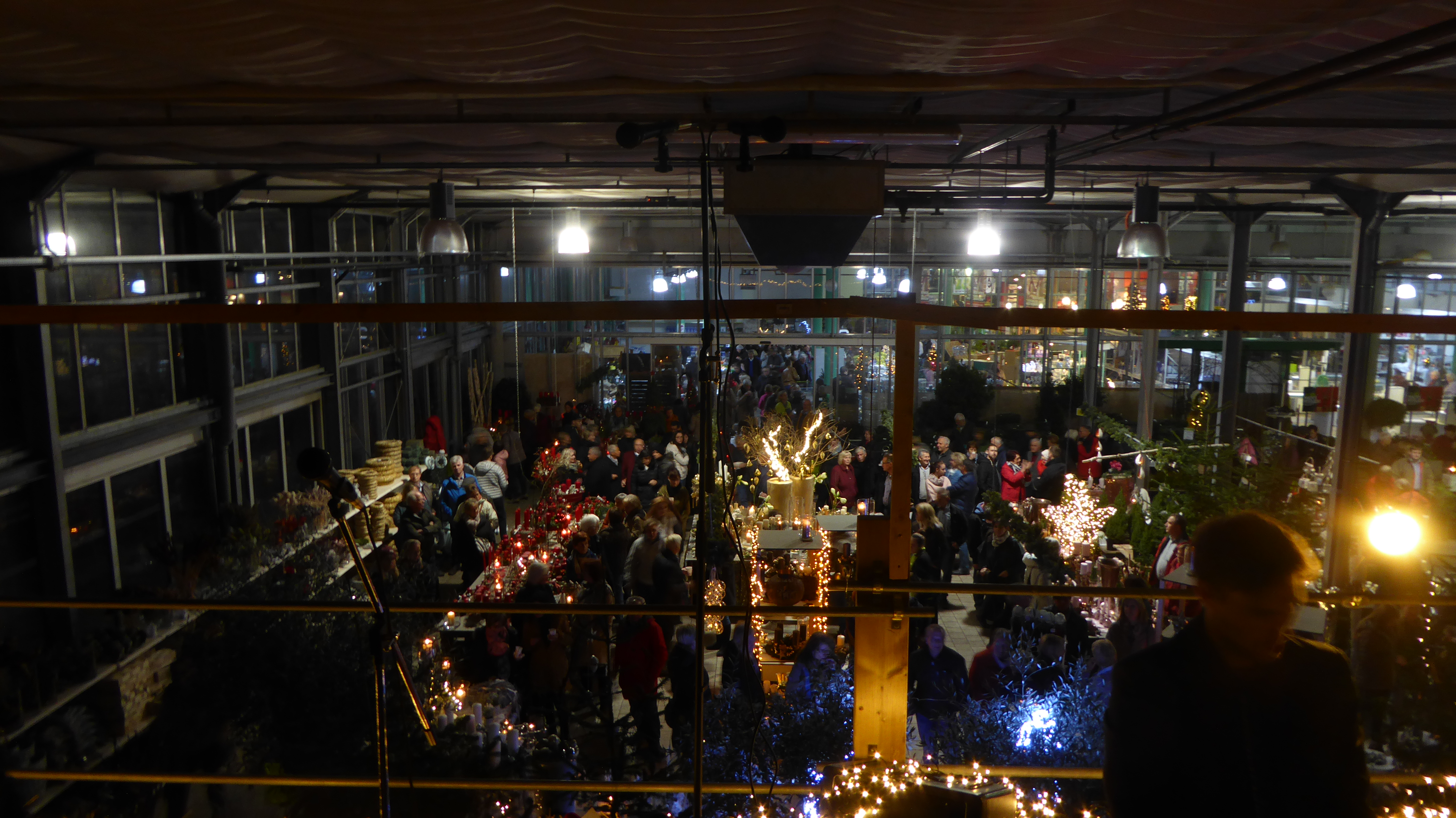 Zwischen Adventsgestecken und Weihnachtsschmuck stehen die Zuschauer und lauschen den Klängen von Chorus Mundi.