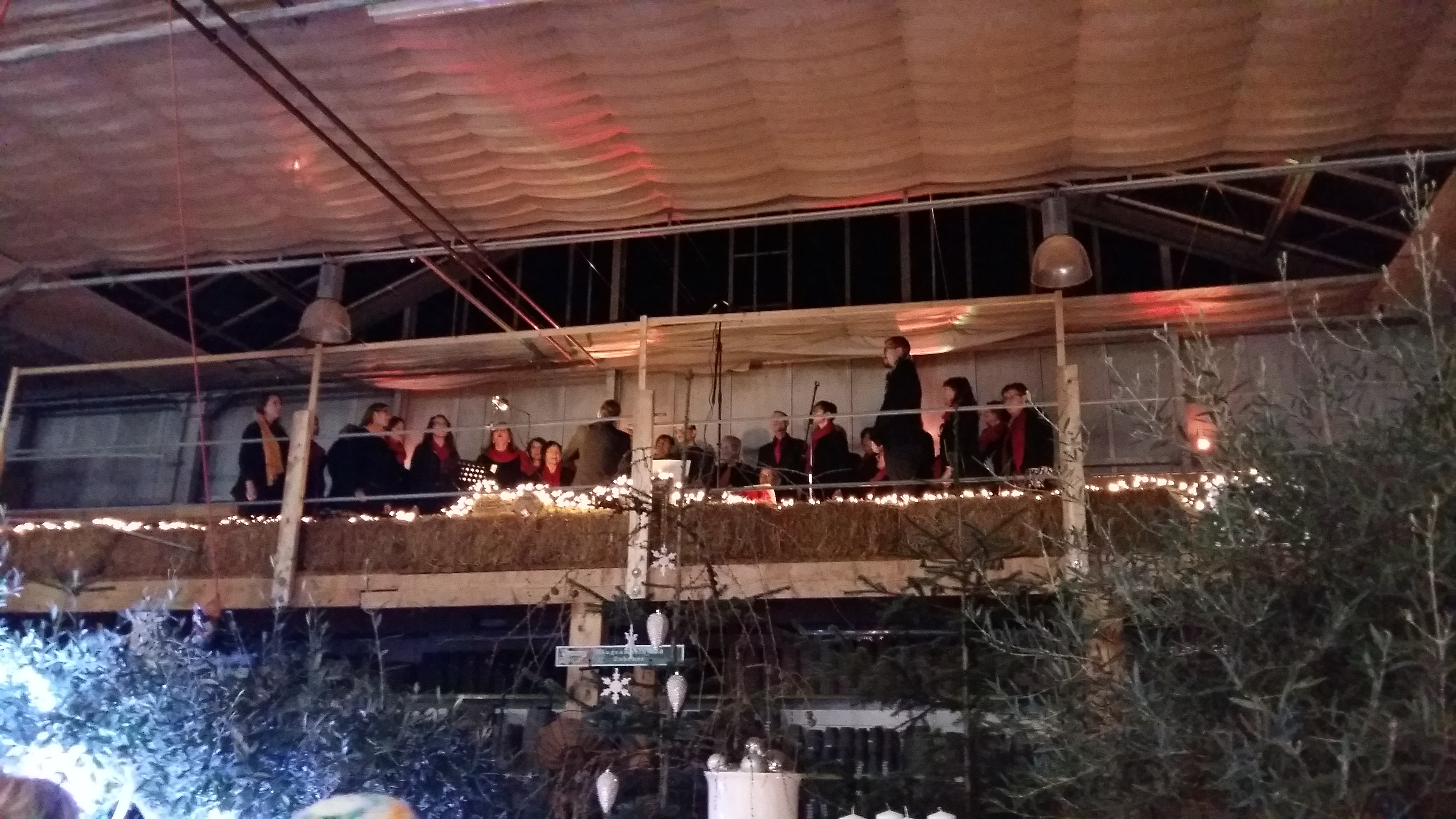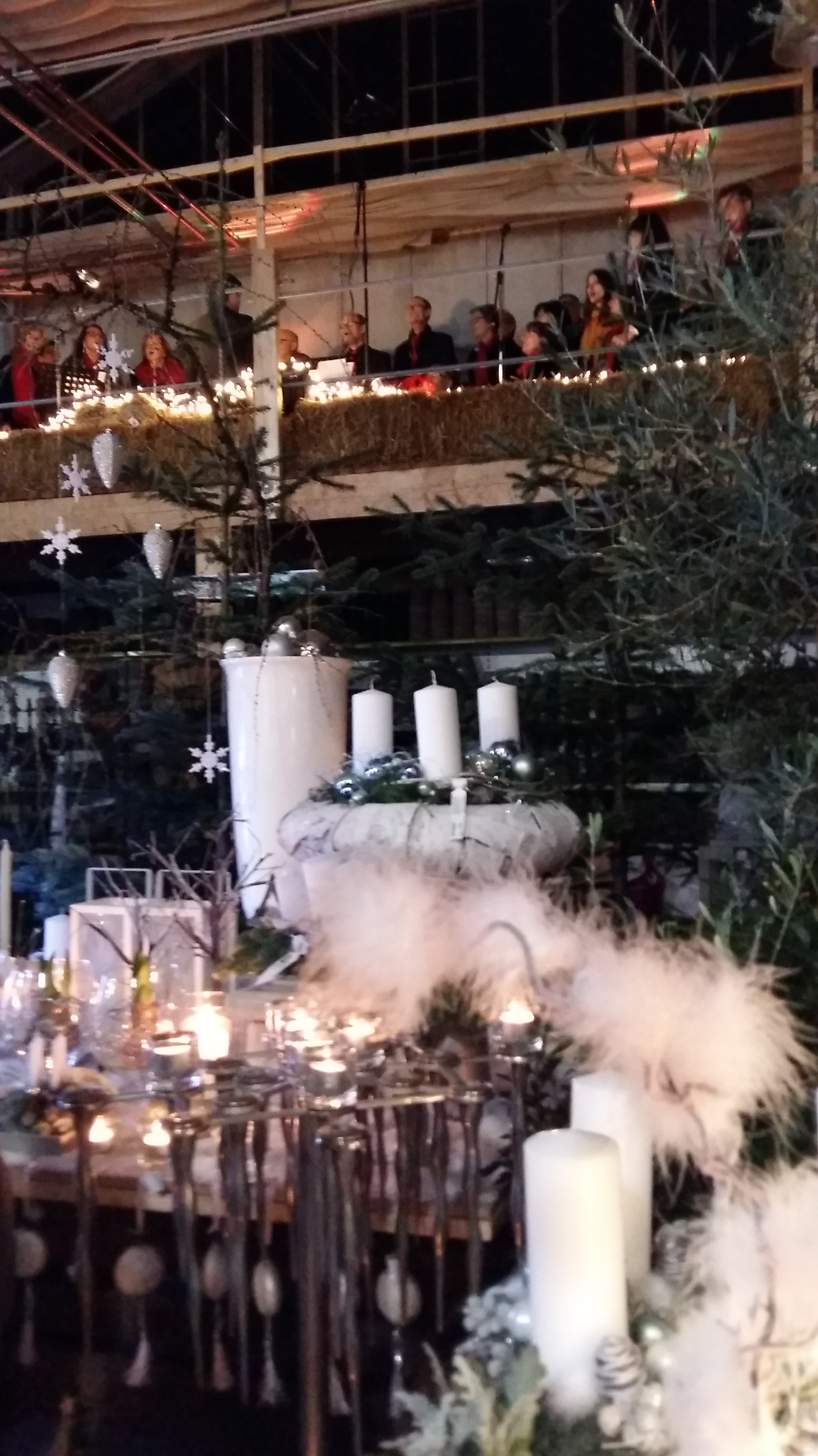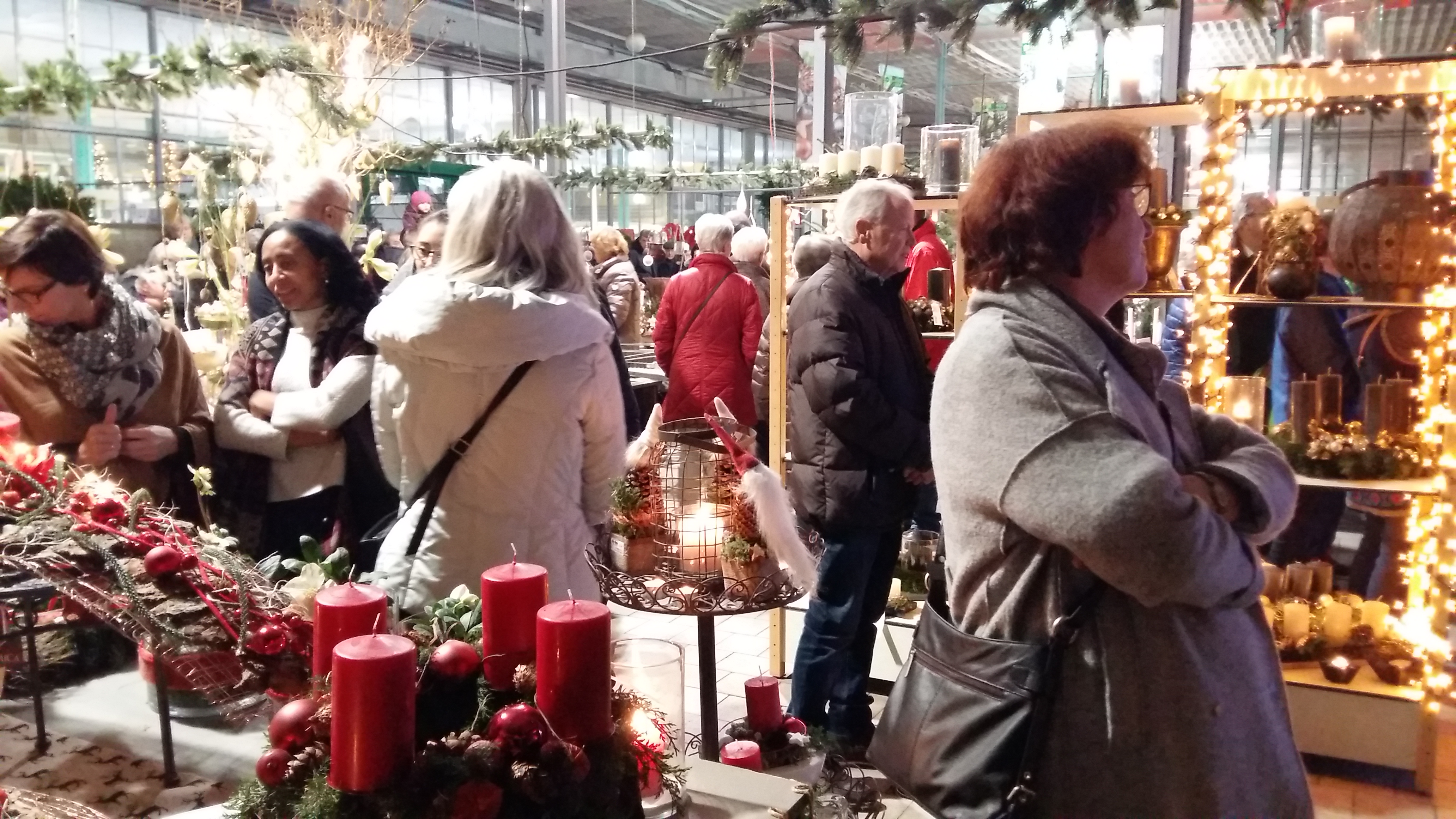 Zwischen Adventsgestecken und Weihnachtsschmuck stehen die Zuschauer und lauschen den Klängen von Chorus Mundi.
