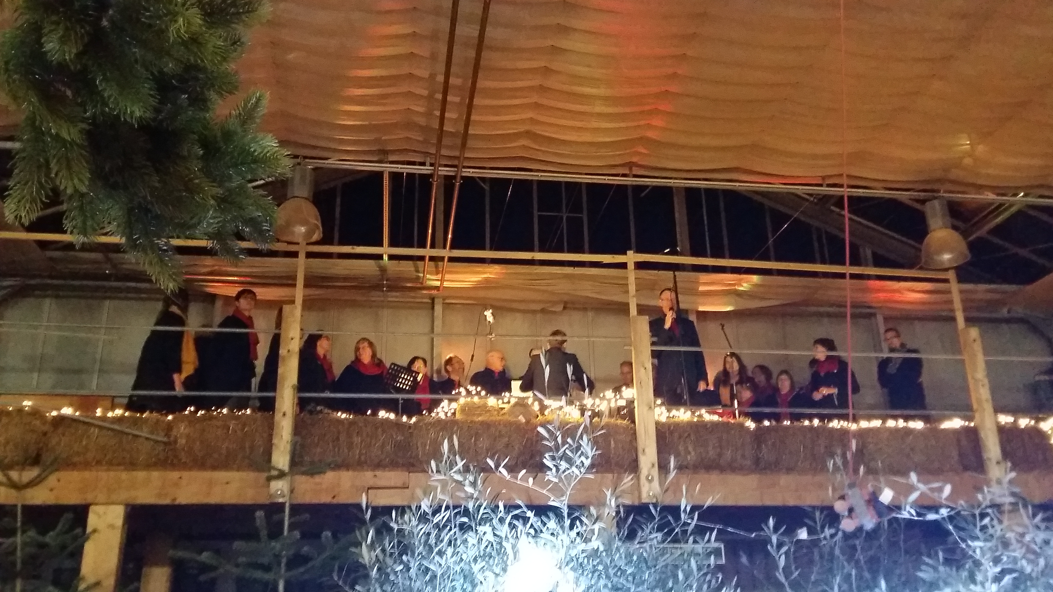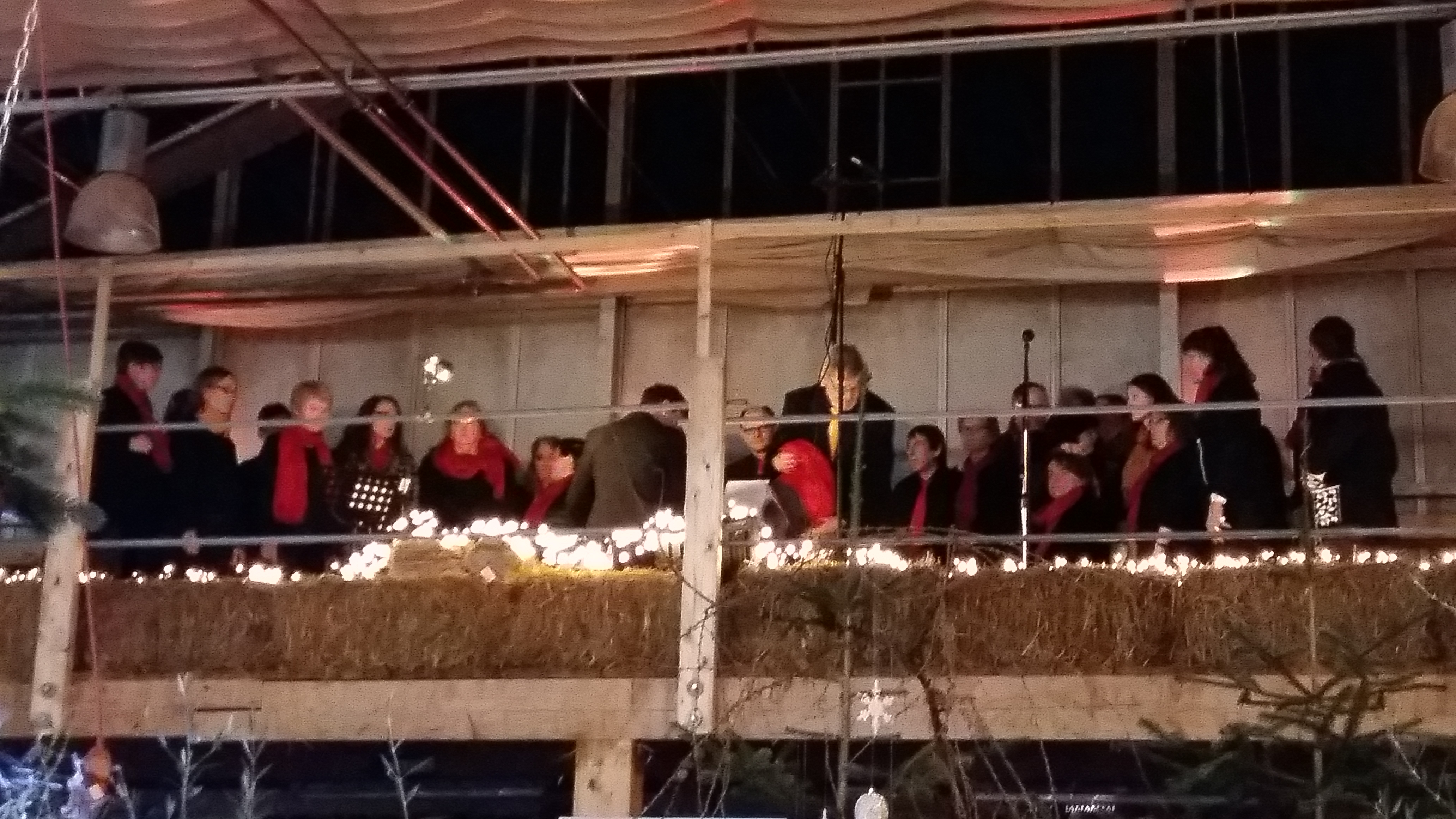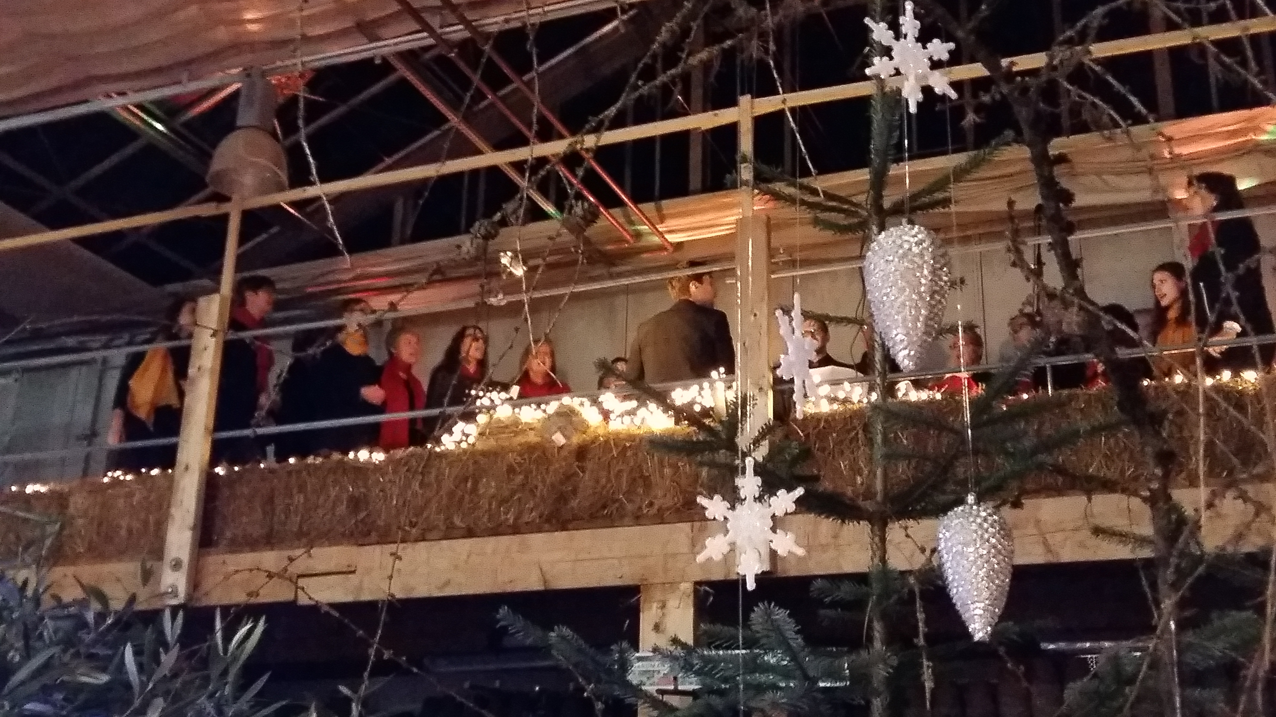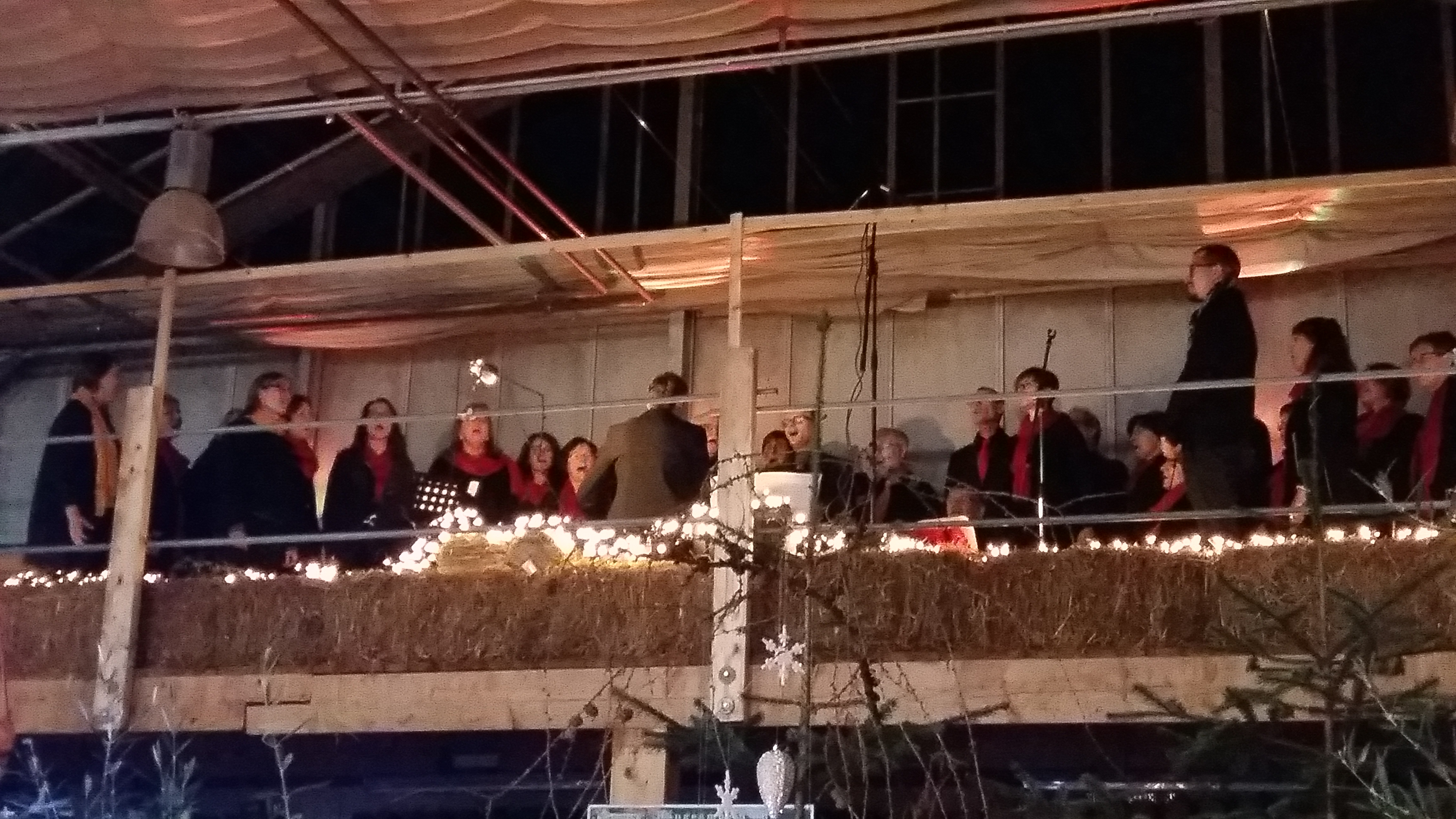 Zwischen Adventsgestecken und Weihnachtsschmuck stehen die Zuschauer und lauschen den Klängen von Chorus Mundi.