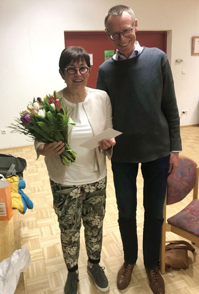 Bei der Jahreshauptversammlung am 28. März 2022 stellte sich unsere langjährige 1. Vorsitzende Ingeborg Wimmer nicht mehr zur Wahl. Als 1. Vorsitzenden wurde Klaus Schnotz gewählt, zur 2. Vorsitzenden wurde Julia Schrantz gewählt. Alle anderen Posten im Vorstand blieben unverändert.